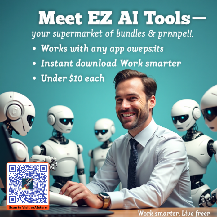 Whether you’re looking to automate repetitive tasks, boost your sales, organize your business projects, or simply make life easier, EZ AI Store has a bundle tailored to your needs. From business prompts to productivity boosters, website-building guides, and client-winning templates, every package is designed for real-world results.
